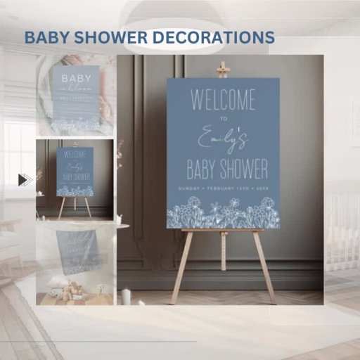 Fêtez l'arrivée d'un nouveau lot de joie avec un beau baby shower thématique Baby in Bloom. Rejoignez-nous pour un après-midi rempli d'amour et de bonheur alors que nous honorons les futurs parents. L'invitation est faite par un arrière - plan bleu poussiéreux, agrémenté d'un éventail de fleurs sauvages dynamiques.