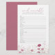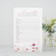 Gardez les invités amusés avec le jeu Fleur sauvage Pink Baby In Bloom Word Scramble Game, un ajout mignon et attrayant à votre bébé dans le baby shower en fleurs. Avec ses tons roses doux et ses fleurs sauvages délicats, ce jeu de baby shower allie plaisir et élégance, ce qui en fait un jeu parfait pour toute célébration fleurie ou inspirée du jardin. Facile à jouer et magnifiquement conçu, ce jeu de mots scramble est une excellente façon de briser la glace et ajouter une énergie joyeuse à vos festivités de baby shower.
