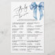 Papier Bébé trivia Script Blue Bow Baby shower jeu