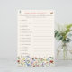 Jolie, estivale et élégante, cette carte de jeu de mots baby shower scramble présente un doux champ pastel de fleurs sauvages délicats avec papillons, bourdons et coccinelles. Vous pouvez customiser tout le texte à vos besoins spécifiques. Veuillez contacter le concepteur pour obtenir les produits correspondants qui ne sont pas disponibles. Les réponses aux mots brouillés sont les suivantes : 1. Nursery 2. Bouteille d'alimentation 3. Poussette 4. Queue de couches 5. Coussin en soins infirmiers 6. Vêtements pour bébés 7. Moniteur bébé 8. Crème de couches 9. Baby shower 10. Échangez 11. Pacifique 12. Couverture