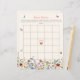 Bohème, élégant et joli, cette carte de jeu de bingo de bébé dispose d'un beau champ de fleurs sauvages d'été délicats avec papillons, bourdons et coccinelles. Vous pouvez customiser tous les détails du texte et du placement graphique à vos besoins spécifiques. Le concepteur recommande le type de papier semi-brillant par opposition au type de papier satiné pour ce produit particulier, car la différence d'épaisseur de papier sera beaucoup plus facile pour les gens de pouvoir écrire sur. Veuillez contacter le concepteur pour obtenir les produits correspondants qui ne sont pas disponibles.