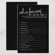 Épicez votre douche nuptiale avec le Black Who Know The Bride meilleur jeu de Fête des mariées! Ce jeu minimaliste ajoute une touche moderne à toute douche nuptiale avec son design contemporain et propre. Avec des invites réfléchies pour révéler la personnalité et les préférences de la mariée, ce jeu encourage le rire et la compétition amicale entre les invités. La mariée sera ravie de découvrir qui porte la plus grande attention aux petits détails qui la rendent unique.