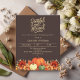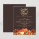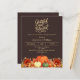 Un arrière - plan brun foncé. Décoré de fleurs citrouilles et orange et jaune. Personnalisez et ajoutez les détails de la fête. Texte : Grateful and Blessed. 1 feuille = 1 invite imprimé bord à bord.