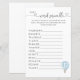 Blue Hot Air Ballotte Baby shower Word Scramble Carte de jeu