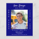 Personnalisez et ajoutez une photo, un nom, le nom de l'école, la classe et les détails de la fête. Un arrière - plan bleu marine, texte blanc. 1 feuille = 1 invite imprimé bord à bord.