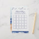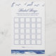 Blue Nautical Coastal Sea Bridal Bingo Carte de jeu Plongez vos invités dans une expérience balnéaire paisible avec notre Blue Coastal Sea Fête des mariées. Cet élégant design saisit la beauté sereine de la côte, avec des teintes bleues douces et des éléments marins délicats. Parfait pour une douche nuptiale ou un thème nautique mariage, il évoque un sentiment d'évasion tropicale et d'élégance balnéaire. Note : Cliquez sur "Modifier" pour personnaliser avec vos informations.