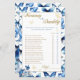 Qui sait le mieux, maman ou papa ? Ce jeu de baby shower amusant permet aux clients de deviner qui s’occupera des premières de bébé, tout en riant et en partageant des histoires douces. Décoré d'élégants papillons bleus et de touches dorées, il apporte charme et joie à votre célébration. Vous aimez ce look mais en avez besoin sur un autre produit? Faites-nous savoir, nous le créerons pour vous ! Je vous souhaite une journée pleine de sourires. Chaleureux, ArCharmeSalutations studio 💙 🦋