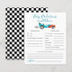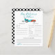 Fun race car thème garçon baby shower bébé prédictions et carte de conseil avec aquarelle illustration d'une voiture vintage bleu avec l'art de la flamme rouge. Les textes sont modifiables. Un jeu parfait à jouer pendant la douche et sera certainement un grand gardien! La carte demande aux invités de prédire à quoi ressemblerait le bébé.