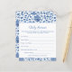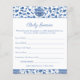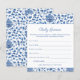 Jeu de baby shower "Baby Guesses" [écrivez les prédictions pour la date de naissance, la taille et le poids du bébé, etc] dans un élégant thème chinois bleu et blanc. Tout le texte est entièrement personnalisable à vos besoins.