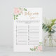 Papier Blush floral nom race baby shower jeu