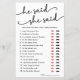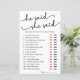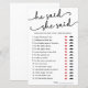 Minimaliste Il Dit Elle Dit Devinez Qui A Dit Game Fête des mariées Game est une façon amusante de créer des souvenirs avec vos amis et votre famille. Prenez cette Carte pour votre mariage magnifique et créez des moments mémorables. Vous pouvez customiser toutes les polices de couleur, les lignes, les arrière - plans, et lèvres son est pour customiser.