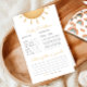 Brille un peu de lumière sur l'avenir avec ce jeu amusant et coloré Boho Sunshine Baby shower de prédiction et de conseil jeu! Les clients aimeront faire des prédictions sur l'arrivée du petit, de l'anniversaire et du poids aux premiers mots et aux premiers aliments.