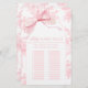 Jeu élégant et sophistiqué "Baby name race", conçu pour une douche bébé à thème Coquette. Doté d'un arc rose dessiné à la main sur l'arc bohème et d'un motif vintage rose fleuri à l'arrière, ce jeu classique ajoute une touche intemporelle et amusante à votre événement. Idéal pour divertir les clients et créer des souvenirs chéris, c’est un complément idéal à une fête de baby shower sucrée et préppie.