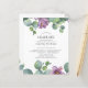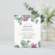 Une invitation de fête de fin d'études moderne et élégante de la promotion 2022 avec un feuillage botanique d'eucalyptus et des succulentes en aquarelle verte et violette. Ce design tendance est parfait pour annoncer votre fête de remise de diplômes et inviter vos invités.