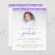 Un rapport qualité-prix BUDGET alternative sur une taille plus petite 4,5 x 5,6" semi-brillant poids 110lbs, qui est d'une épaisseur similaire à une carte postale (cependant ne convient pas à l'utilisation comme carte postale.) VEUILLEZ NOTER qu'il y a UN par feuille. Budget 2024 Graduation Photo Purple Parties scintillant Party Invitation. Les bordures en faux parties scintillant de verre sont au sommet des deux côtés. Le diplômé est dans un script élégant avec des swashes. Personnalisez facilement le texte selon vos besoins et remplacez l'exemple d'image par le vôtre. Pour conserver l'aspect contemporain minimaliste de ce design, une photo avec un arrière - plan de couleur claire fonctionnera bien.
