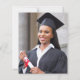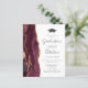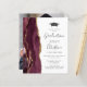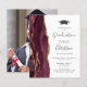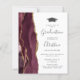 Cette invitation à la fête de remise de diplômes 2025 branchée présente une image aquarelle de géode rouge bordeaux avec des reflets de parties scintillant d'or. Le mot "Graduation" et le prénom du diplômé apparaissent dans l'élégant script d'écriture grise au fusain sur un arrière - plan blanc, ainsi que le casquette de tableau de mortier et les détails de la fête dans les polices sans serif et italique. Remplacez facilement l'image de l'échantillon au dos par une photo verticale du diplômé.