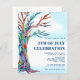 Famille d'Invitations et amis à votre célébration 4 juillet avec cette Invitation budget unique. Il est décoré d'un arbre en mosaïque et d'un ciel bleu aquarelle. Facile à personnaliser. Cette invitation festive est parfaite pour n'importe quel thème de célébration du quatrième juillet. Utilisez l'outil de conception pour modifier la taille, le style ou la couleur du texte. Parce que nous créons notre oeuvre, vous ne trouverez pas cette image exacte d'autres designers. Aquarelle originale © Michele Davies.