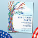 Famille d'Invitations et amis à votre 4 juillet avec cette Invitation budget unique. Il est décoré d'un arbre en mosaïque et d'un ciel bleu aquarelle. Facile à personnaliser. Cette invitation festive est parfaite pour n'importe quel thème de célébration du quatrième juillet. Utilisez l'outil de conception pour modifier la taille, le style ou la couleur du texte. Parce que nous créons notre oeuvre, vous ne trouverez pas cette image exacte d'autres designers. Aquarelle originale © Michele Davies.