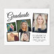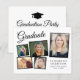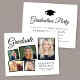 Invitation moderne pour la remise des diplômes avec un collage photo de 5 images éparpillées dans des cadres noirs, "Graduate" dans un script élégant, le nom de la grade dans la typographie serif classique, leur année d'école et de classe en lettres simples, et vos détails de fête personnalisée sur le dos. Ce papier semi-brillant budgétaire est similaire en poids au papier photo. Une version plus grande de 5x7 traditionnelle carte stock est également disponible (message nous pour le lien).