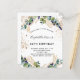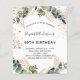Pour une fête d'anniversaire de 40e (ou tout âge). Un arrière - plan blanc décoré de verdure d'eucalyptus et de feuilles dorés.Décoré de points de parties scintillant dorés. Personnalisez et ajoutez vos noms et les détails du mariage. Lettres noires et dorées.