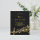 Une carte d'invitation branchée et moderne de 70e anniversaire (ou de n'importe quel âge) pour hommes et femmes. Un arrière - plan noir classique et des notes de musique, des lettres dorées. Personnalisez et ajoutez les informations de votre parti. Retour : Noir couleur fausse note de musique or.
