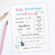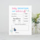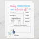 Budget bébé prédictions et conseils pour les parents feuille de papier que vos invités peuvent remplir à la soirée de révélation de genre. Joli quiz que vos invités peuvent jouer. Design en bleu et rose avec de jolies illustrations d'oiseaux de cigogne livrant une petite fille et un bébé garçon. Personnalisez-le ou modifiez la police, les couleurs et le libellé en cliquant sur le bouton pour modifier la conception.