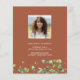Invitation votre famille et vos amis pour vous aider à célébrer cette étape extraordinaire de votre vie! Cette version économique de notre belle et minimaliste Boho Arch Graduation Invitation inclut des places pour deux de vos photos, vos détails personnels, et une jolie lierre ornant à la fois l'avant et l'arrière. Nous aimons l'arrière - plan marron en terre cuite avec typographie manuscrite blanche, mais recherchez d'autres options et accessoires dans notre collection Graduation. 🎓