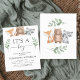 Budget Woodland Animals - Ours, Racoon, Fox Eucalyptus Verdure Aquarelle Botanique Printemps Genre Neutre C'est un garçon Baby Shower Invitations sur arrière - plan blanc - comprend belle et élégante typographie de script avec feuilles botaniques modernes et la verdure pour la célébration spéciale Mère à être.
