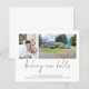 BUDGET Decking New Halls 2 Photos Déménagement Noël. Un prix économique SMALLER 4.5" x 5.6" plat 110 lb carte pour vos salutations festives sur un stock de carte SEMI GLOSS 110 lb (semblable à l'épaisseur d'une carte postale. Remplacez simplement les deux exemples de photos par les vôtres et personnalisez avec votre salutation et nom et nouvelle adresse en bas. Decking New Halls est dans un élégant script set.