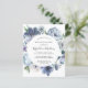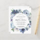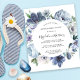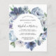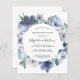 Des pivoines bleues ondulées forment un cadre rond autour des détails de votre fête d'anniversaire sur cette élégante invitation budgétaire.