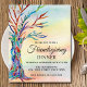 Invitation tes amis à ton Dîner d'Action d'Ami avec cette invitation budgétaire unique. Il présente un arbre en mosaïque aux couleurs de l'arc-en-ciel sur un arrière - plan d'aquarelle. Facile à personnaliser. Mosaïque originale et aquarelle © Michele Davies.
