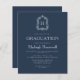 Ce design classique et élégant d'invitation à la remise des diplômes comprend un monogramme blanc initial en police serif ouverte encerclé par une ligne art acanthus crête sur un arrière - plan bleu marine. Personnalisez le texte avec le nom du diplômé et les détails du parti. Le dos de la carte est bleu marine solide. Idéal pour un diplôme d'études secondaires, collégiales ou universitaires.