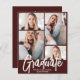Budget Modern Four Photo Script Graduation Invitation en Bourgogne arrière - plan.