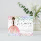 Multicolor Parties scintillant Gown Quinceanera Invitation. Un prix économique PETIT 4,5 po x 5,6 po alternatif. Disponible dans un STOCK CARTE SEMI GLOSS 110 lb qui est l'option par défaut (plus épais pour les invitations), OU un STOCK PAPIER THINNER SATIN FINISH 80 lb (idéal pour les enceintes). Les enveloppes sont en option et légèrement plus grandes que la taille de la carte. Elégance pétillante pour votre Quinceanera avec une illustration de la vue arrière d'une fille aux cheveux tressés dans une belle robe rose boule et parties scintillant de couleur arc-en-ciel bordant le haut et le bas de chaque côté. L'en-tête principal est dans un script de style manuscrit et personnalise facilement le reste du texte à vos détails.