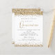 Parties scintillant d'or Quinceañera Invitation.Une alternative économique SMALLER 4.5" x 5.6". Disponible dans un STOCK SEMI GLOSS 110 lb CARD ou un STOCK SATIN FINISH 80 lb THINNER PAPER. Les enveloppes sont en option. D'élégantes bordures de confettis en faux parties scintillant doré sont en haut et en bas et aussi à l'arrière. Quinceañera est aménagée dans un style moderne d'écriture manuscrite. Personnalisez facilement le reste du texte à vous.