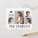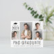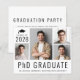Faire-part d'obtention d'un doctorat moderne et abordable et invitation de la fête avec un collage photo de 4 images, "Doctorat Graduate" écrit en bas dans de grandes lettres capitales et son année de classe, nom et collège ou université en simple typographie. Au contraire, ajoutez les détails de la fête principale.