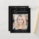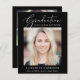 Elégante et économique fille noire de graduation et invitation de fête avec "Graduation Celebration" dans un élégant script blanc et la typographie blanche, sa photo et son nom, l'école et l'année de classe en simple typographie blanche moderne. Au verso, ajoutez une autre photo et les détails de la fête de remise des diplômes.