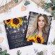 Style rustique campagne PHOTO BUDGET abordable fête de graduation élégante invitation modèle sur foncé minuit bleu marine arrière - plan de tableau noir avec de grands bouquets de tournesols en or jaune et des cordes de lumières scintillantes. ++++++++++++++++++++++ L'invitation est adaptée pour les fêtes de remise de diplômes de jardin / jardin rustique. +++++++++++++++++++++++++++++++++++ VEUILLEZ LIRE CECI AVANT D'ACHETER ! Il s'agit d'une carte de mariage abordable et économique imprimée sur une feuille papier (chaque feuille comporte une carte). ++++ Pour une qualité de rapport optimale, notre conseil est de choisir le type de papier Semi-Gloss (il est assez épais pour être utilisé pour la papeterie) ++++ Si vous avez besoin d'enveloppes, choisissez ENVELOPE OPTION. +++ Vérifiez toutes les informations et l'orthographe de votre texte car vous recevrez exactement ce que vous voyez - personne d'autre ne vérifiera quoi que ce soit avant l'impression. ++++ Cette carte est conçue pour la taille 4,5" x 5,6". Dans le coque vous choisissez une autre taille de la carte et le texte sort de la page, tout doit être corrigé avant d'ajouter le produit au panier. Demandez de l'aide au service Live Design.