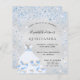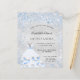 Pour un élégant Quinceañera, 15ème anniversaire. Un arrière - plan métallique à l'aspect faux argenté. Décoré de poussière de parties scintillant en faux bleu et d'une robe pour une fête d'hiver sur le thème du pays des merveilles. Personnalisez et ajoutez un nom, un âge et des détails de la fête. Le nom est écrit avec un script de style manuscrit