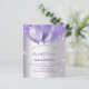 Un arrière - plan élégant à l'allure fausse argent. Décoré de violet, de faux parties scintillant couleur lavande et de ballons. Personnalisez et ajoutez un nom, un âge et des détails de la fête. Le nom est écrit avec un script de style manuscrit