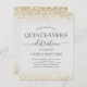Budget Gold et White Faux Parties scintillant Sparkle Girly Quinceanera Fête Invitations comprennent une belle et élégante typographie de scénario pour la célébration spéciale du 15e anniversaire.