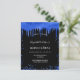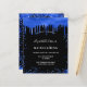 Quinceañera, une Quinceañera, 15ème anniversaire. Devant : Un arrière - plan noir chic. Décoré avec des gouttes de parties scintillant bleu royal, la peinture goutte à goutte. Personnalisez et ajoutez un nom et des détails du parti. Le nom est écrit avec un script de style écrit à la main.