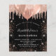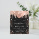 Un arrière - plan noir. Décoré d'or rose, de gouttes de parties scintillant blush, de la peinture goutte à goutte et des ballons. Personnalisez et ajoutez un nom, 21 ans et les détails de la fête. Le nom est écrit avec un script de style manuscrit