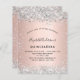 Pour une Quinceañera élégante, fête du 15e anniversaire. Un arrière - plan rose à l'apparence métallique. Décoré avec de la parties scintillant en faux argent. Personnalisez et ajoutez un nom et des détails du parti. Le nom est écrit avec un script de style manuscrit