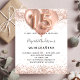 Pour un élégant Quinceañera, 15ème anniversaire. Une arrière - plan blanche design. Décoré d'or rose, de faux parties scintillant roses, de mousseux et de ballons. Personnalisez et ajoutez un nom, ainsi que les détails du parti. Le nom est écrit avec un script de style écrit à la main, numéro 15 avec des polices de style ballon.