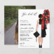 Budget Grad Girl with Red and Black Balloons Custom Year Modern Minimalist Photo Elle l'a fait Graduation Invitation