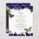 Budget Elégant Royal Blue Gold Floral Papillons Quinceañera Quince Invitation