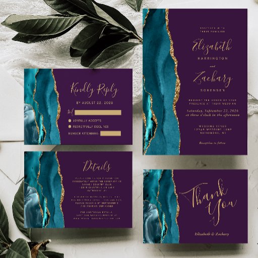 Teal Gold Agate Purple Wedding SuiteConçu par Akhates Designs