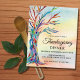 Invitation votre famille et vos amis à votre dîner Thanksgiving avec cette invitation unique à budget. Il dispose d'un arbre généalogique en mosaïque colorée sur un arrière - plan aquarelle. Facile à personnaliser. Mosaïque originale et aquarelle © Michele Davies.