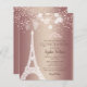 Budget Tour Eiffel Rose Gold Sparkle Parties scintillant Quinceañera Quince Invitation